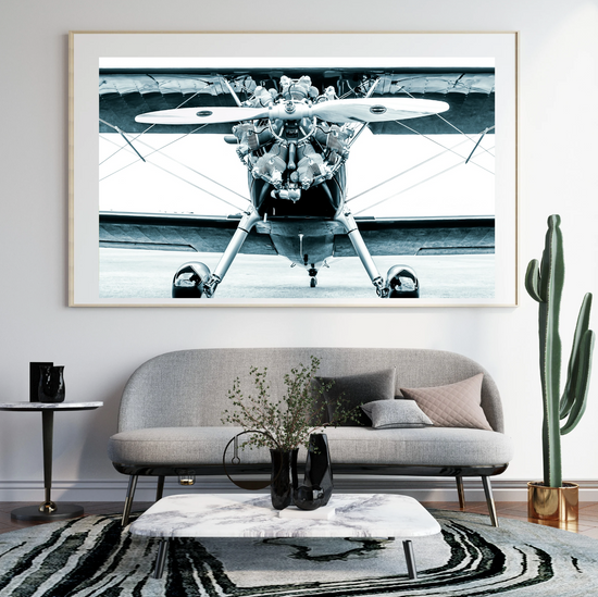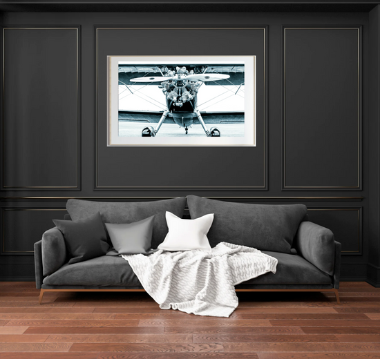 This captivating series highlights the enduring spirit of classic aviation through the powerful presence of a vintage biplane. The monochrome styling draws attention to the intricate radial engine, gleaming propeller blades, and elegant rigging—a testament to aviation’s golden age. With each photograph capturing a unique angle, Blue Steel celebrates both the mechanical artistry and timeless allure of flight, inviting the viewer to experience the thrill of the open skies.