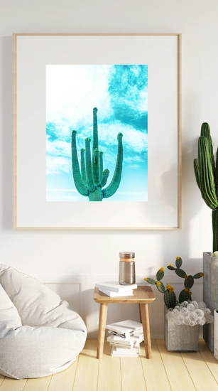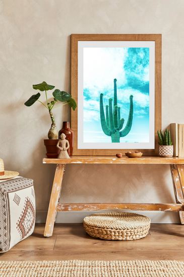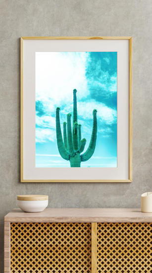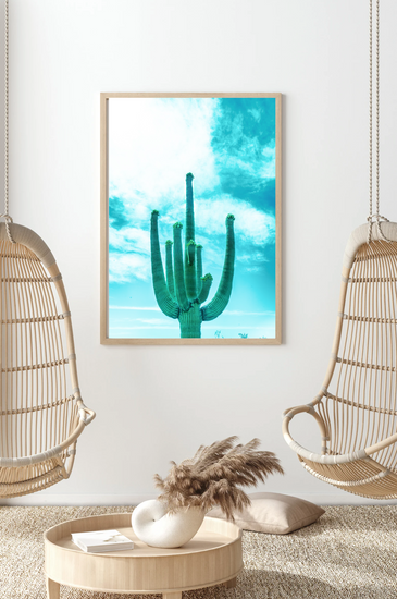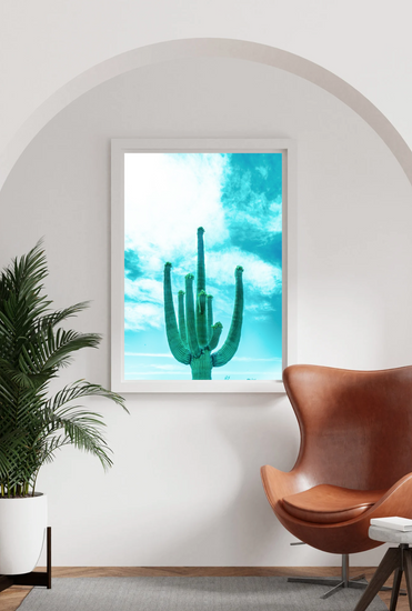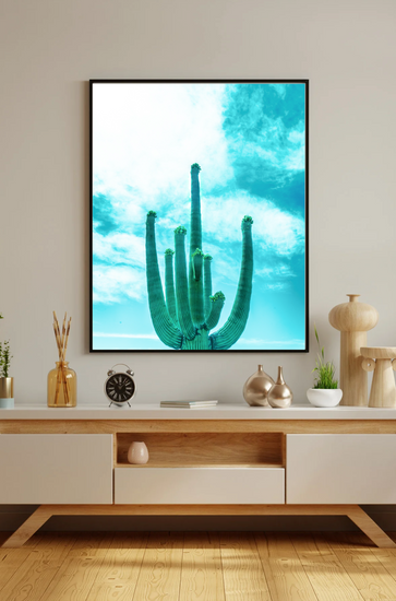 Two palms stand tall and still against a dreamy turquoise sky, echoing the laid-back rhythm of California’s shoreline. “Coastal Duet” captures the simplicity and elegance of West Coast living with a splash of tropical minimalism. A perfect piece for beach lovers, desert dreamers, and modern boho interiors.