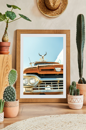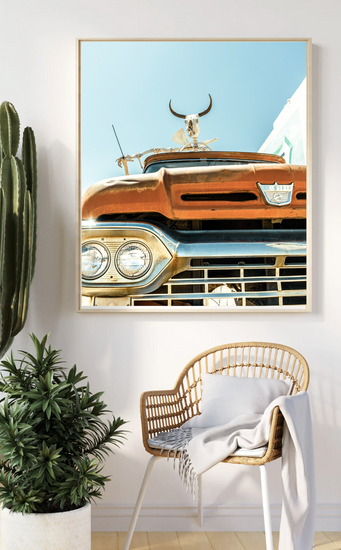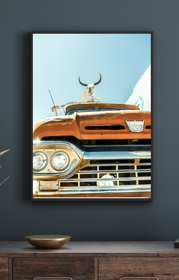 “Come and Take” is a defiant ode to the American Southwest, where rugged independence meets the open road. Shot on Route 66 in New Mexico, this striking image features a classic truck adorned with a steer skull—an emblem of the untamed spirit that that I loved about living in Texas, and that unforgettable saying: “Come and Take It.” It’s a perfect piece for those who celebrate grit, freedom, and the legends of the West.