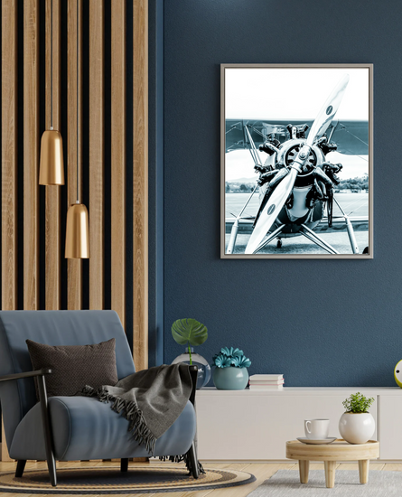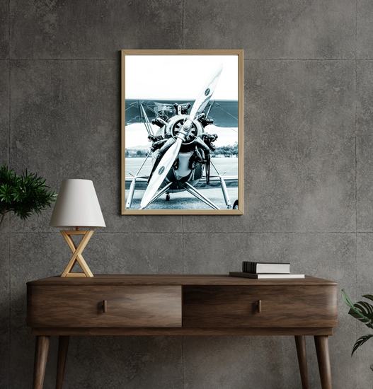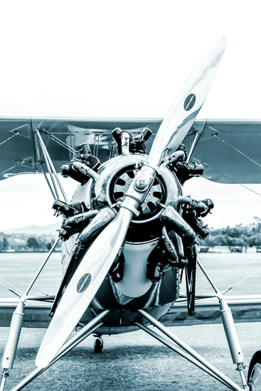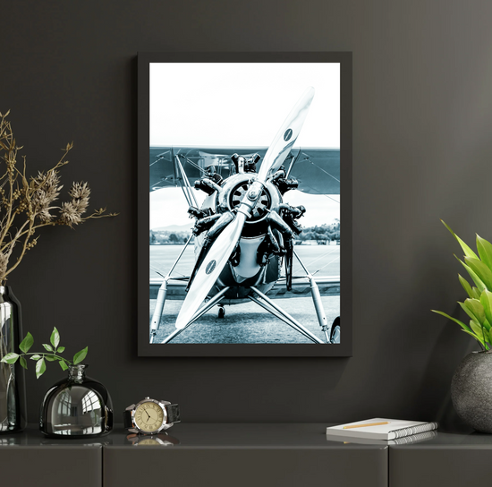Staring down the barrel of aviation history, this vintage biplane reveals its radial engine and wooden prop with timeless grace. A study in symmetry and strength, the portrait captures the enduring soul of flight’s golden era.